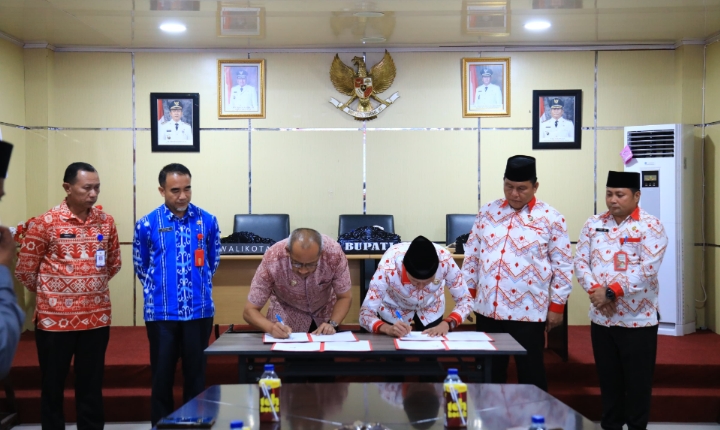 INFOSULAWESI.com KOTAMOBAGU - Penjabat (PJ) Wali Kota Kotamobagu, Dr. Drs. Hi. Asripan Nani., M.Si dan Bupati Bolaang Mongondow Selatan, Hi. Iskandar Kamaru, S.Pt., M.Si melakukan penandatanganan Kesepakatan Bersama Antara Pemerintah Daerah Kota Kotamobagu dengan Pemerintah Daerah Kabupaten Bolaang Mongondow Selatan, tentang kerja sama antar daerah dan Penandatanganan Kerja Sama tentang Pengendalian Inflasi Daerah, Kamis 4 Juli 2024, di Kantor Bupati Kabupaten Bolaang Mongondow Selatan.