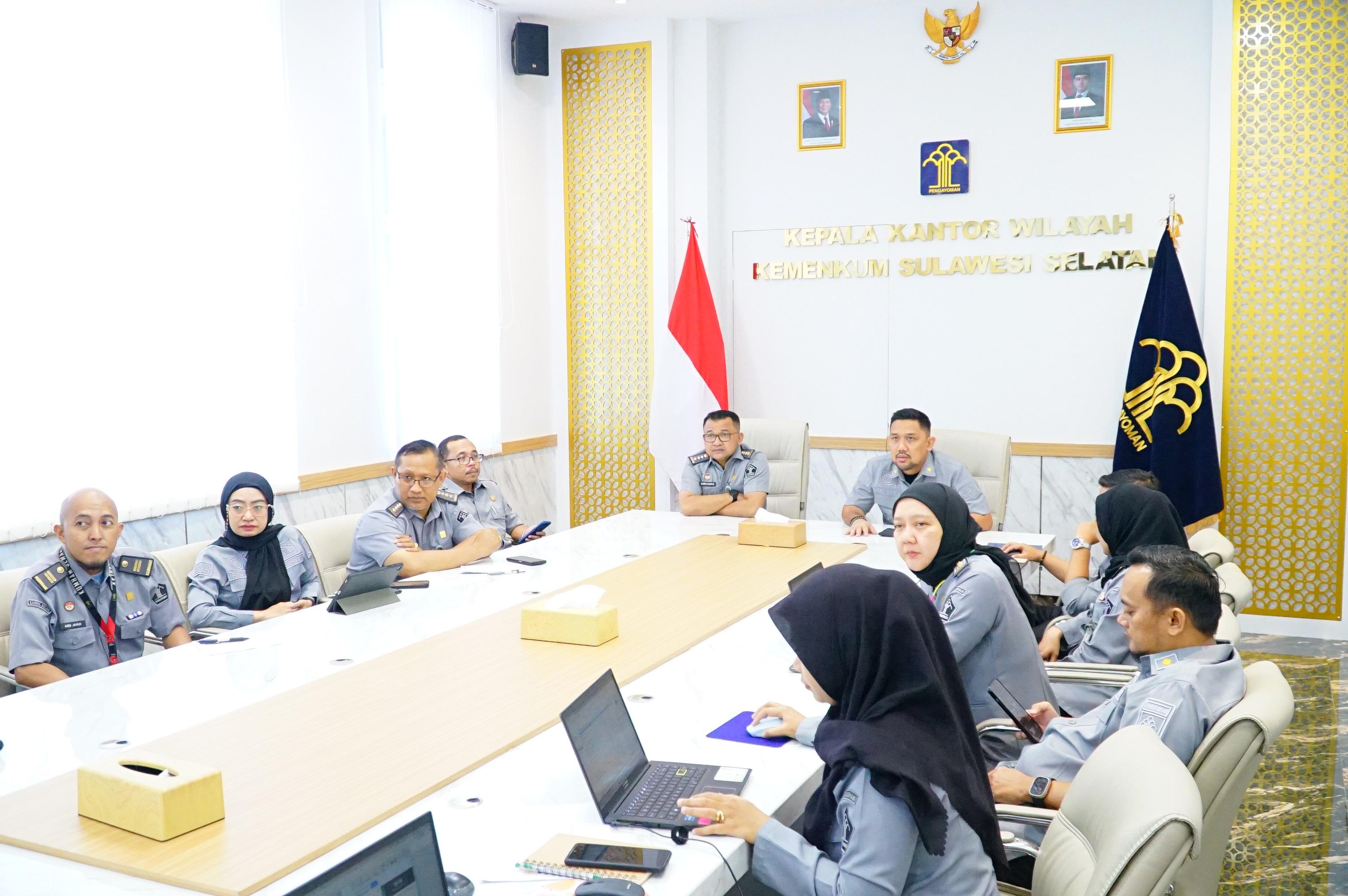 Rapat ini digelar di Ruang Rapat Kepala Kantor Wilayah yang laksanakan secara Hybrid terpusat di Kanwil Sulsel. Rapat ini dihadiri oleh Para Pimpinan Tinggi dan Tim Pembangunan Zona Integritas Kanwil Kemenkum Sulsel menuju Wilayah Birokrasi Bersih dan Melayani.