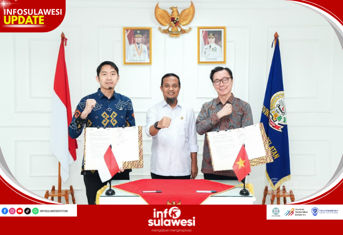 JAKARTA - Gubernur Sulawesi Selatan, Andi Sudirman Sulaiman menyaksikan penandatanganan Nota Kesepahaman (MoU) antara Badan Usaha Milik Daerah (BUMD) Sulsel dengan perusahaan terbesar di Vietnam (Vingroup), untuk pengembangan pertambangan dan energi terbarukan (PLTS), property dan rumah subsidi, kendaraan listrik, rumah sakit dan proyek skala besar lainnya.