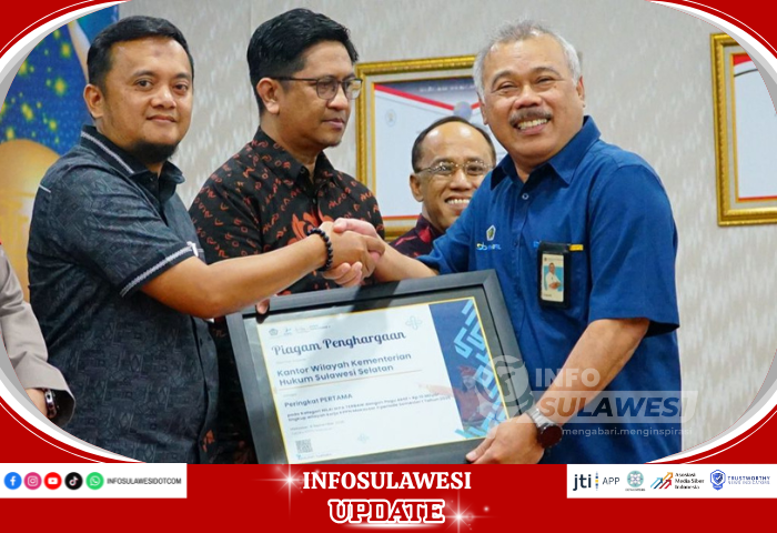 Piagam penghargaan tersebut diterima oleh Analis Anggaran Ahli Madya Kanwil Kemenkum Sulsel, Khomaini, mewakili Kepala Kantor Wilayah Kemenkum Sulsel, Andi Basmal.