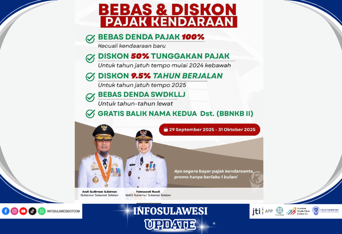 Kebijakan ini tertuang dalam Surat Keputusan Gubernur Sulsel Nomor 1525/IX/Tahun 2025 tentang Pemberian Insentif Pajak Kendaraan Bermotor.