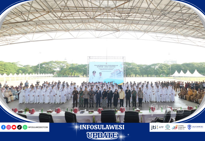 Prosesi pelantikan dan pengambilan sumpah/janji jabatan berlangsung di Tribun Lapangan Karebosi, Senin (29/09/2025), disaksikan jajaran Forkopimda dan pejabat lingkup Pemkot Makassar.