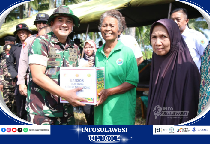 INFOSULAWESI.com KOTAMOBAGU - Dalam rangka memperingati Hari Ulang Tahun (HUT) TNI ke-80 Tahun 2025, Komando Distrik Militer (Kodim) 1303 Bolaang Mongondow, menggelar serangkaian kegiatan diantaranya, Penanaman Pohon Mangrove, pemberian Bantuan Sosial, dan Bazar Murah yang ditujukan kepada seluruh masyarakat, bertempat di Desa Ambang, Kecamatan Bolaang Timur, Kabupaten Bolmong, Rabu 1 Oktober 2025.