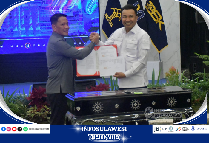 Makassar --- Kantor Wilayah (Kanwil) Kementerian Hukum (Kemenkum) Provinsi Sulawesi Selatan (Sulsel) dan Pemerintah Daerah (Pemda) Kabupaten Luwu Utara (Lutra) sepakat menandatangani Nota Kesepahaman (MoU) tentang Pembentukan Produk Hukum Daerah, Pembinaan Hukum, dan Pelayanan Hukum, Senin (6/10/2025), di Aula Pancasila Kemenkum Sulsel, Makassar.