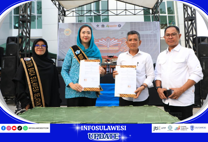 Kepala Dinas Perpustakaan dan Kearsipan Provinsi Sulawesi Selatan, Prof. Dr. Muhammad Jufri, serta Duta Baca Provinsi Sulawesi Selatan, Ramlah yang juga merupakan narasumber dr gelar wicara tersebut.