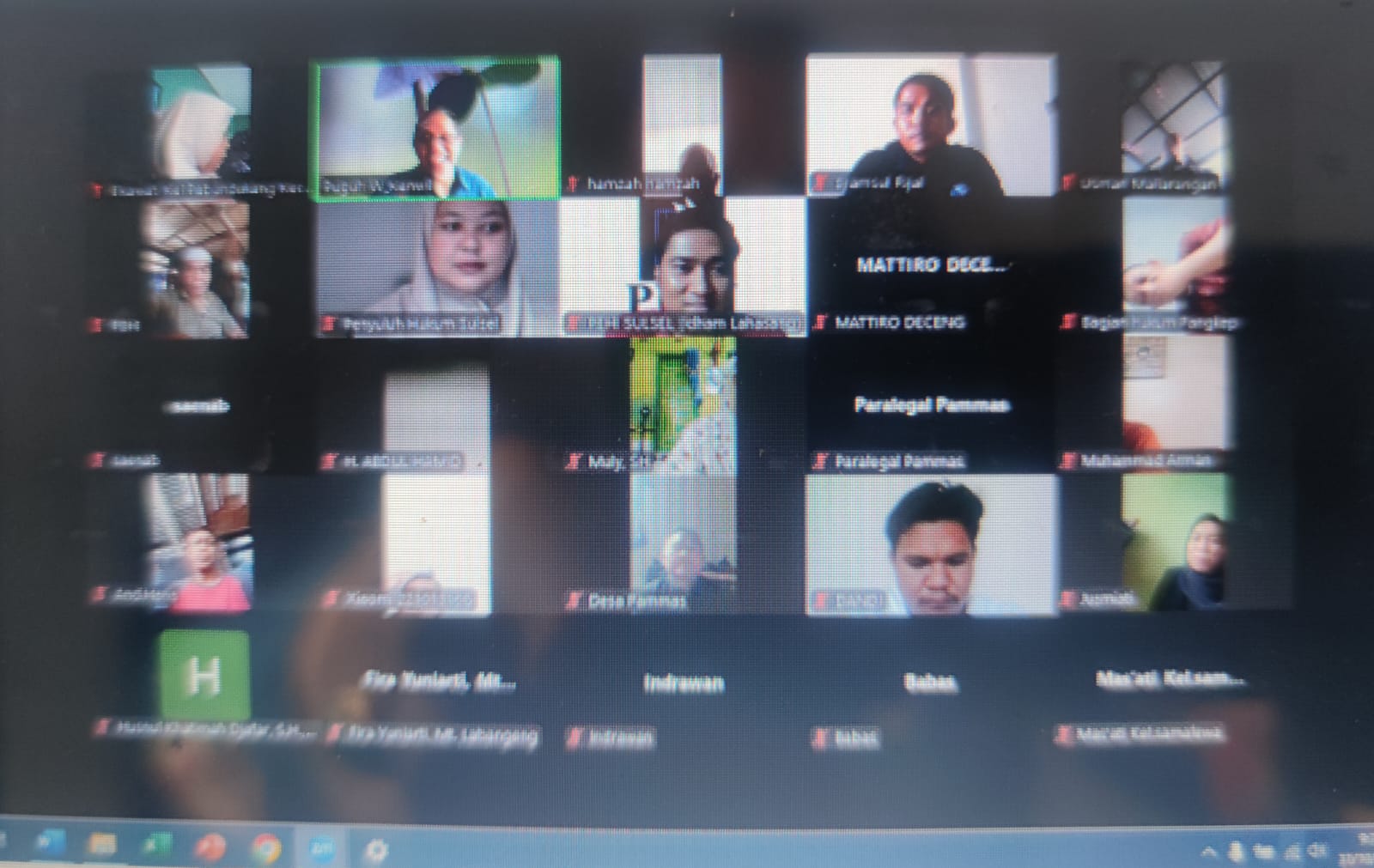 Makassar -- Kantor Wilayah Kementerian Hukum Sulawesi Selatan (Kanwil Kemenkum Sulsel) menghadiri secara daring pembukaan Pelatihan Paralegal Posbankum Desa/Kelurahan se-Kabupaten Pangkep, Jumat (31/10/2025).