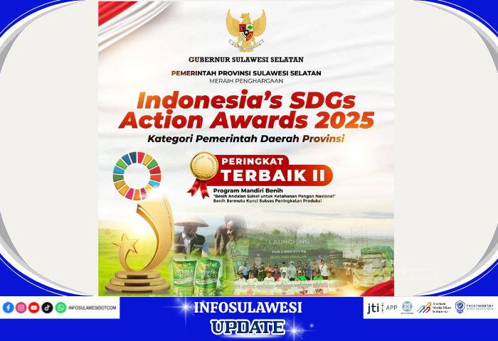 “Alhamdulillah, Pemerintah Provinsi Sulawesi Selatan mendapatkan penghargaan Indonesia's SDGs Action Awards 2025 sebagai Peringkat Terbaik II Kategori Pemerintah Daerah Provinsi untuk Program Mandiri Benih. Terima kasih kepada Kementerian PPN/Bappenas serta UN Resident Coordinator atas apresiasi ini,” ujarnya.