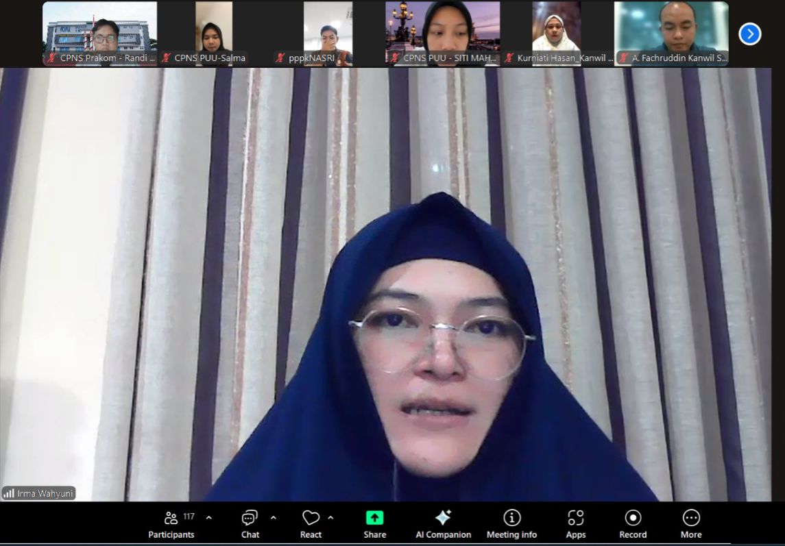 Makassar – Kantor Wilayah Kementerian Hukum Sulawesi Selatan (Kanwil Kemenkum Sulsel) melaksanakan kegiatan internal yang kemudian ditutup dengan arahan akhir pekan yang disampaikan secara virtual oleh Perancang Peraturan Perundang-undangan Madya, Irma Wahyuni, Minggu (23/11).
