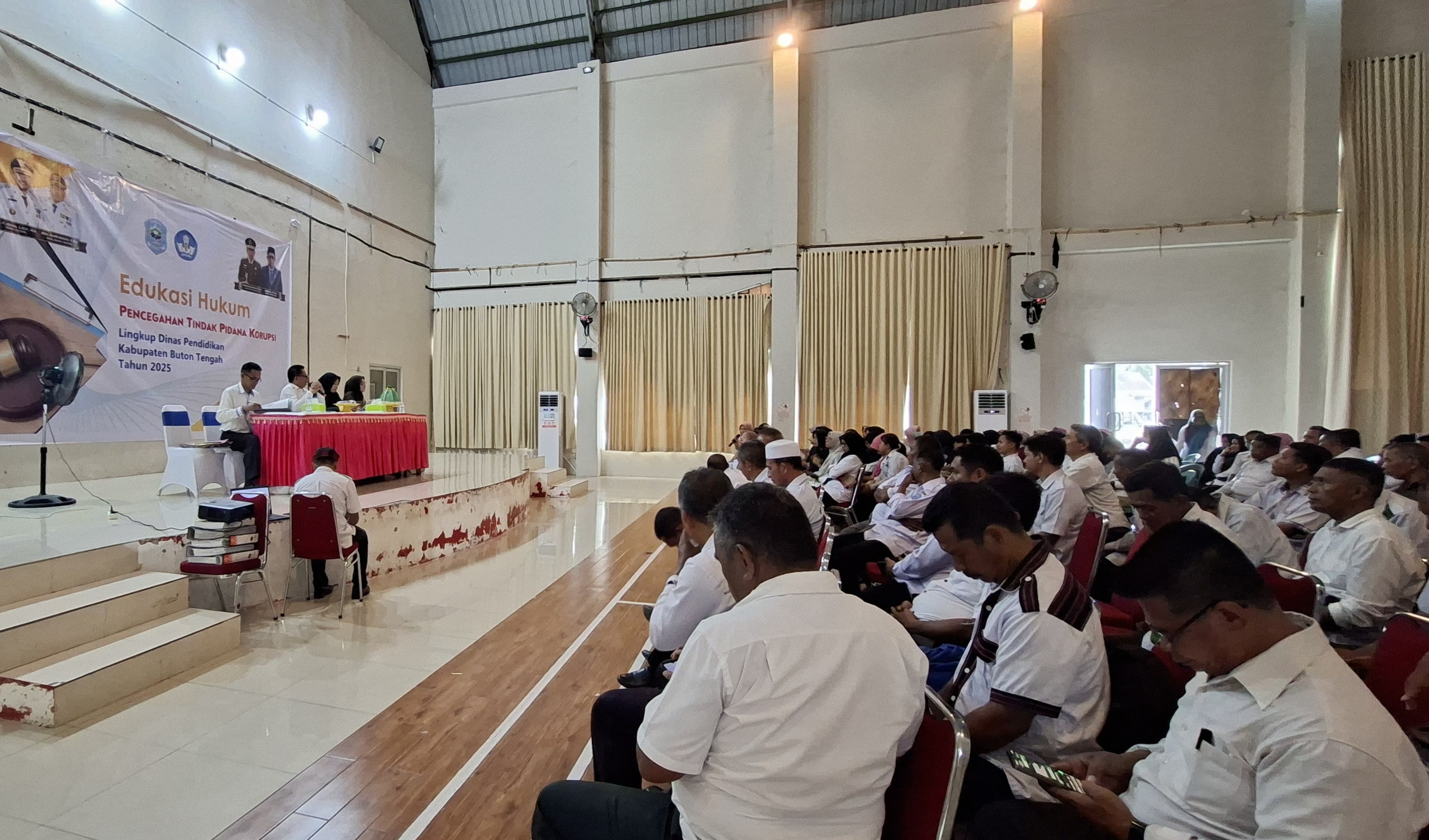Kegiatan yang digelar di gedung kesenian Lakudo itu, melibatkan seluruh Kepala Sekolah serta bendahara tingkat sekolah dasar dan menengah pertama di Buteng.