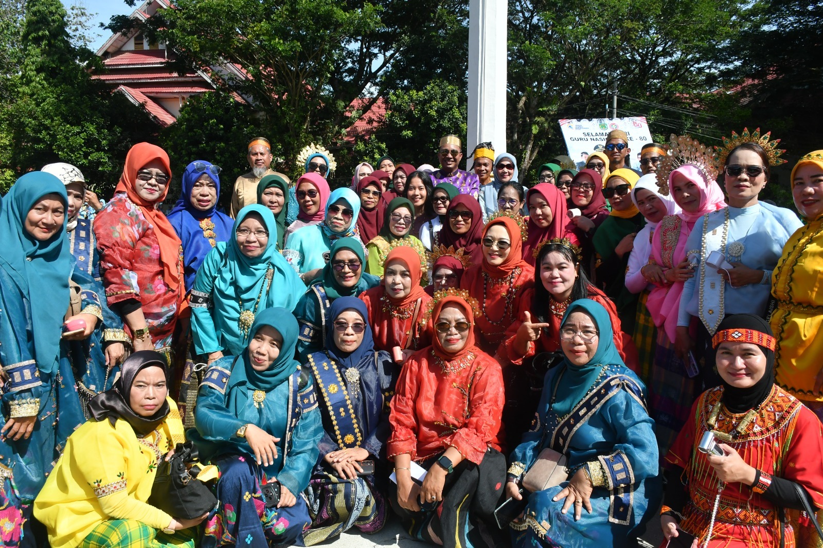 Para guru hadir dengan mengenakan pakaian adat Nusantara. Demikian pula dengan para pejabat yang hadir yang juga kompak dengan pakaian adat masing-masing. Termasuk Bupati Luwu Utara, Andi Abdullah Rahim, yang hadir sebagai inspektur upacara (irup), juga terlihat gagah dengan balutan busana adat Nusantara berwarna ungu.