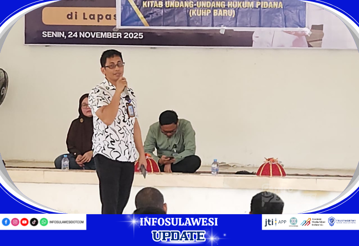 Makassar -- Kantor Wilayah Kementerian Hukum Sulawesi Selatan (Kanwil Kemenkum Sulsel) menggelar penyuluhan hukum bertema "Arah Baru Pidana Indonesia" berdasarkan UU No. 1 Tahun 2023 tentang KUHP Nasional. Acara ini membahas tujuan pemidanaan modern yang menekankan pencegahan tindak pidana, pembinaan terpidana, penyelesaian konflik, serta pemulihan rasa aman di masyarakat.